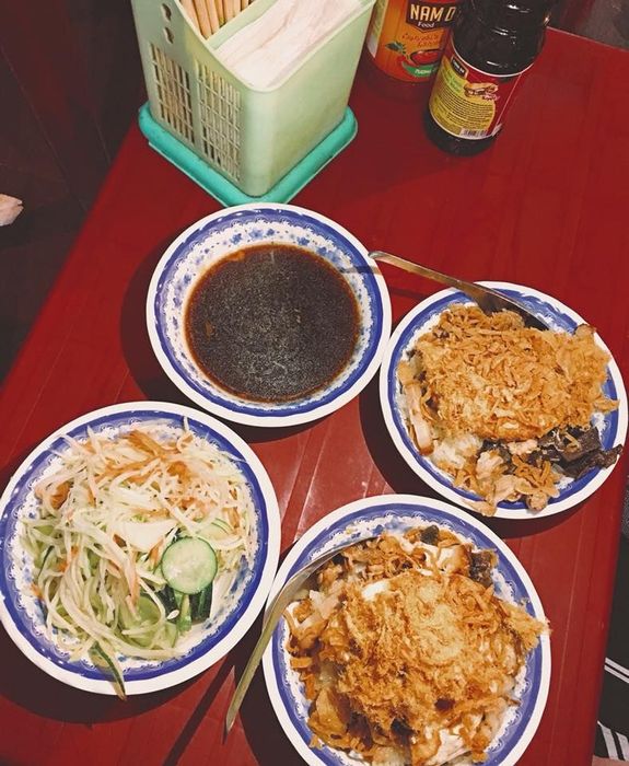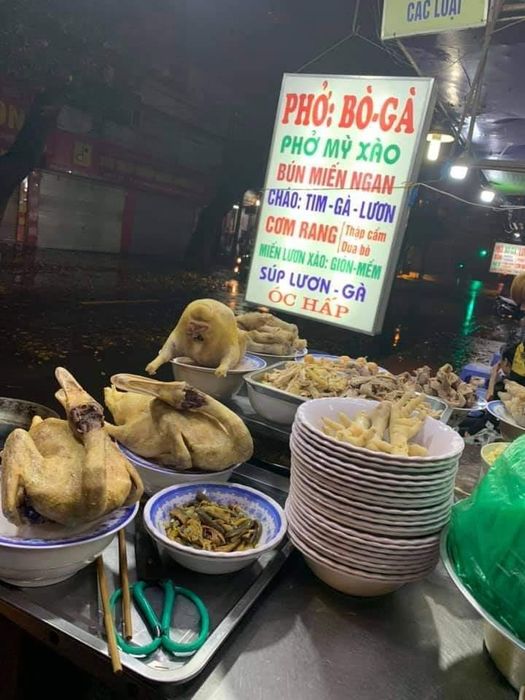 The menu at Xôi Đêm offers a variety of sticky rice, all priced at 25,000 VND per bowl. Choices include Xôi Xéo (sticky rice with fried onions) and plain Xôi Trắng (white sticky rice), with a selection of toppings like Vietnamese sausage, pâté, eggs, stir-fried chicken with mushrooms, and barbecued pork. No matter which topping you choose, the rice is served heaping, piping hot, and fragrant. The shop also serves drinks such as iced tea, bottled water, soy milk, and cola. A standout feature is the side of sweet-and-sour pickled salad and a bowl of savory broth to complement the meal, preventing the rice from feeling too dry. This special combination makes it a unique spot compared to other sticky rice shops. If you're someone who enjoys late-night bites, this is the perfect place for you!