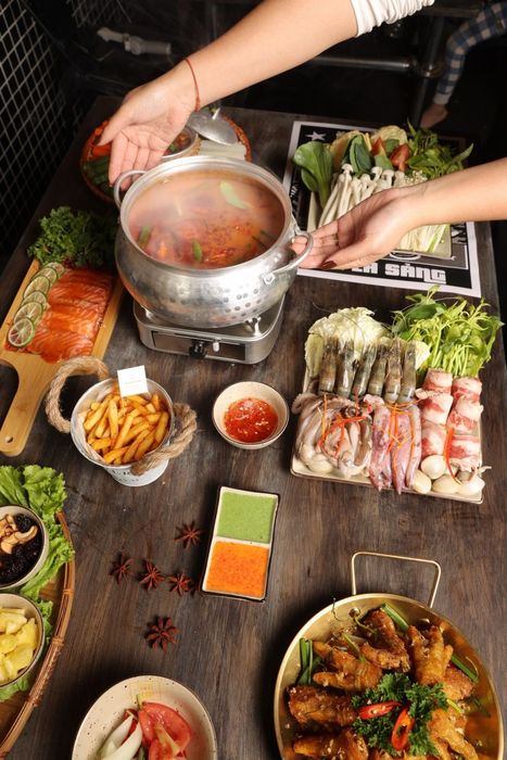 KinKin Hot Pot - One-Person Hot Pot is a perfect choice for your weekend outing. The restaurant offers a spacious and airy atmosphere with a variety of seating options, ranging from floor seating to high tables, allowing you to choose based on your preference. In addition to the comfortable setting, KinKin Hot Pot also offers a wide range of delicious hot pot options, available in both regular and large sizes suitable for groups, as well as individual portions. The seafood hot pot and mixed hot pot are the main attractions, with an array of fresh, high-quality ingredients for dipping.
