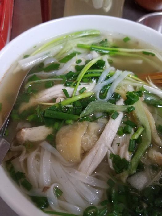 When visiting, don't miss out on the gà tần paired with noodles—it's a perfect combination. The chicken is stewed with a variety of herbs, offering an incredibly nutritious meal. Just the chicken and noodles alone make for a super wholesome breakfast. The bánh cuốn, served with a perfectly cooked egg, has a soft yet slightly chewy texture, and the delicious xíu mại (meatball) enhances the dish. A particularly delightful feature is the sweet, clear soup served alongside.