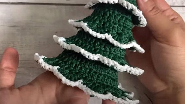 - Step 1: First, crochet a circle with dark green yarn to create the tree's branches. You'll need to make several different-sized circles for the layers of the tree.