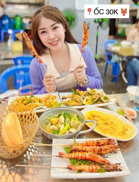 ỐC 30K is popular for its extensive menu and deliciously prepared dishes. You can find a variety of snails, including aroma snails, jumping snails, jackfruit snails, blood cockles, lotus snails, and more, along with many other seafood options, all prepared in various ways such as steaming, grilling, and in different sauces, giving you plenty of choices at affordable prices ranging from 35,000 to 140,000 VND per dish. The restaurant specializes in fresh seafood, particularly snails and crabs, served in a spacious garden-like setting that offers a refreshing atmosphere.