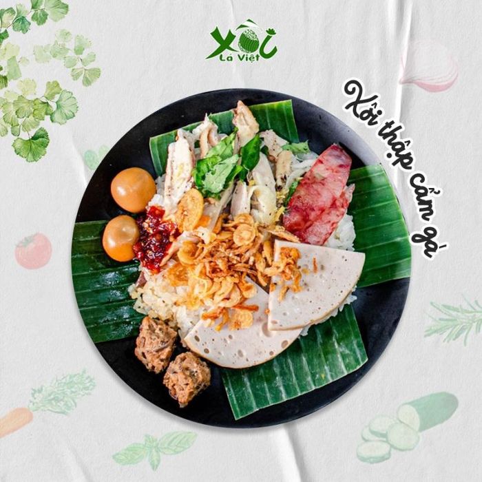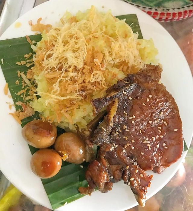 Sticky rice is a cherished part of Vietnamese culinary culture, appearing in countless variations, from savory and sweet versions to those topped with pork floss, braised meat, or sausages. A must-try destination for sticky rice lovers is Xôi Lá Việt, a cozy spot on one of Da Nang's busiest streets, making it easy to find. The sticky rice here is made from carefully selected, fragrant glutinous rice grains, which are soft and chewy. Served hot and wrapped in a fresh banana leaf, this dish offers a truly authentic, rustic experience.