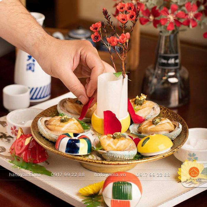 A highlight, perhaps, has to be the ambiance of the restaurant. This place resembles a miniature Japanese neighborhood nestled quietly in the bustling heart of Hanoi. Images of cherry blossoms, Mount Fuji, or light wood tones dominate, giving the Japanese style a unique identity. The dishes at Hatoyama restaurant are also a major draw for repeat customers. With fresh seafood sourced from Tsukiji Market, Hokkaido Sea, and transported to Vietnam by air, the food here is incredibly fresh, nutritious, and delicious. So, make sure to include Hatoyama Japanese Restaurant in your list of favorite dining spots!