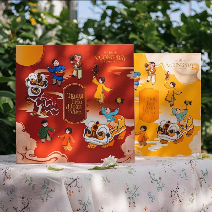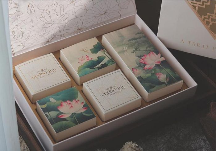 Vuong Bay's mooncakes are always updated with the latest design trends, aligning with the tastes of customers. For those seeking premium mooncakes to gift, the 4-cake and 6-cake gift boxes from Vuong Bay are a great option. These are packaged in sturdy, high-quality cold cardboard boxes, designed to be both elegant and luxurious. The 4-cake red box takes inspiration from festive occasions, while the 4-cake yellow box reflects traditional Vietnamese themes, evoking nostalgia and childhood memories of the Mid-Autumn Festival. Vuong Bay's 6-cake box features crane designs, symbolizing elegance and good luck. There's also a 6-cake box inspired by the lotus flower, with delicate illustrations on fine silk paper—elegant and refined. You can also explore other designs like peony or moon-themed boxes.