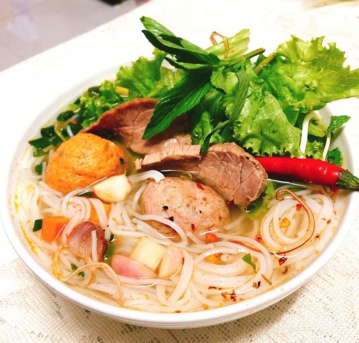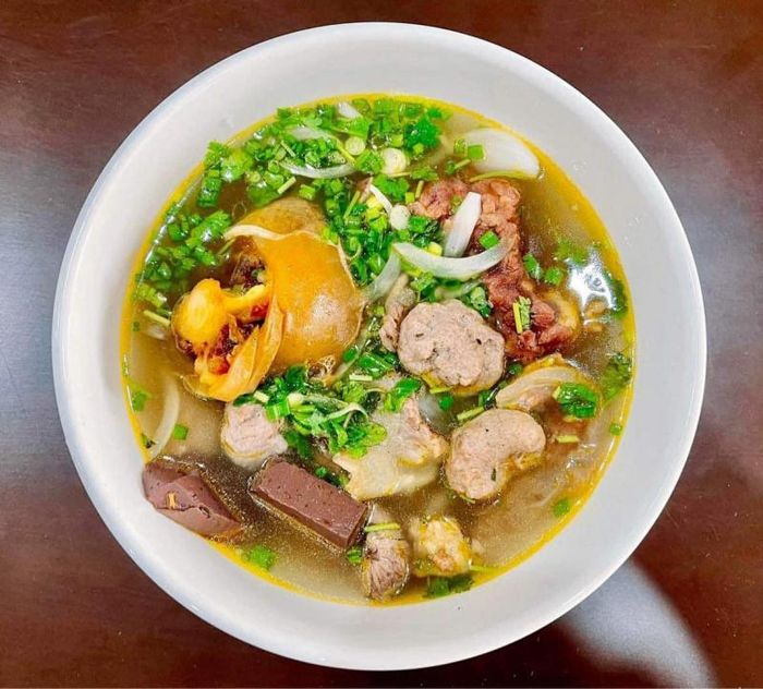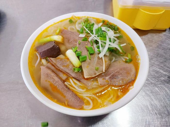 Bún Bò Huế Hoàng Dung is a well-known name for both locals and visitors in Da Nang, offering a unique and unforgettable taste that has become a favorite for many. The broth at Bún Bò Huế Hoàng Dung is rich and flavorful, with perfectly tender beef cartilage that doesn’t have any unpleasant odor, making it a delicious and satisfying experience. Paired with a refreshing iced tea, this dish is sure to leave you feeling both full and content. The quality of the bún is impeccable, featuring tender beef brisket, authentic Huế-style crab cakes, and a broth with a distinct lemongrass shrimp paste fragrance, while still maintaining the natural sweetness of beef bones simmered for hours.