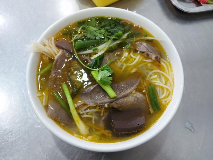The broth is rich and flavorful, with a deep orange hue from the annatto oil, complemented by the brown of tender beef, pork blood, and green onions. Each bowl is carefully prepared with a satisfying balance of flavors and textures. Bún Bò Cô Liên has earned a reputation for offering the best bún bò Huế in Da Nang, with a small but spotless space and friendly, attentive staff.