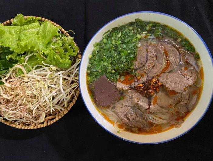 Bún Bò Cô Liên is a renowned spot in Da Nang where you can enjoy a truly authentic bowl of Huế-style bún bò. The preparation of this local delicacy is meticulous, from selecting the freshest ingredients to ensuring every step of the cooking process is executed perfectly. The meat, noodles, broth, and toppings are always fresh and clean, as the restaurant refuses to use frozen or aged ingredients. The Huế-style bún bò served here is cooked by skilled chefs from Huế, and the herbs, such as fresh shredded water spinach, mint leaves, and bean sprouts, add a crisp, refreshing element to the dish, enhanced by a dash of spicy chili paste.
