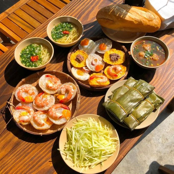 Da Lat Kitchen Restaurant serves a delicious Xiu Mai sandwich, a soft yet chewy bread stuffed with flavorful Xiu Mai. In addition to this, the restaurant offers a wide variety of other dishes, particularly local specialties that are a favorite among tourists. One dish you shouldn't miss is the crispy Banh Can, a small pancake fried in a pan, served with sweet-sour fish sauce and fresh herbs. The restaurant also offers premium soy milk from Da Lat, a nutritious and tasty beverage that perfectly complements your meal.