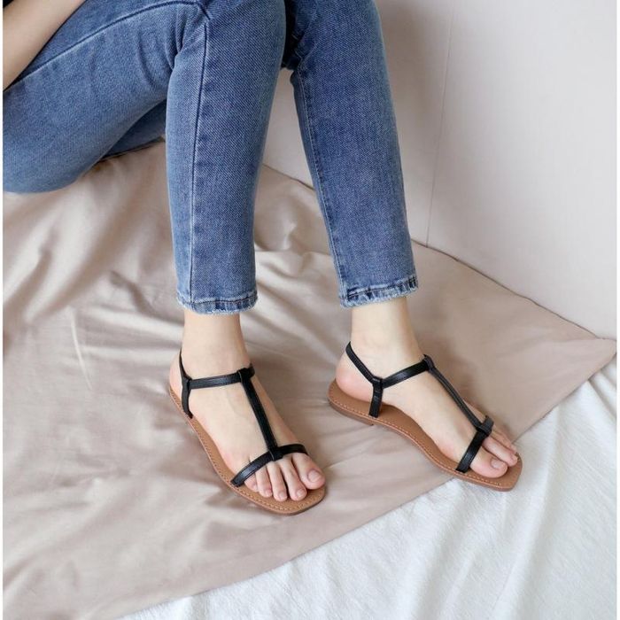 The sandals, designed with sleek horizontal straps, create the illusion of longer legs. The minimalist approach to the design, with fewer straps, enhances the foot's appearance, making it look even more elongated. These sandals boast an ideal form that pairs well with virtually any outfit, giving you a chic, feminine silhouette while maintaining elegance. Not only stylish, the sandals are also very sturdy, providing confidence with every step.