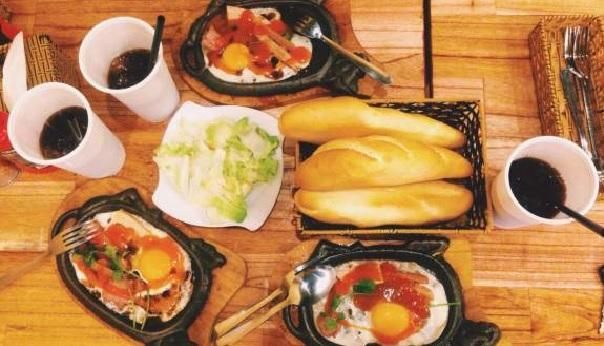 Deliciously Seared Beef - Truong Chinh serves quality breakfast and dinner. The dishes, especially the beef, are delicious. The beef is tender, flavorful, and perfectly accompanied by sauces. Depending on your choice, you can get a suitable amount of beef, eggs, sausages, and more. The crispy hot bread served with the beef is outstanding. The restaurant also offers a sweet and sour salad that perfectly balances the meal's richness.