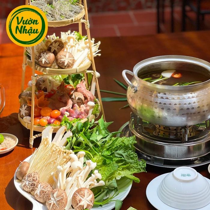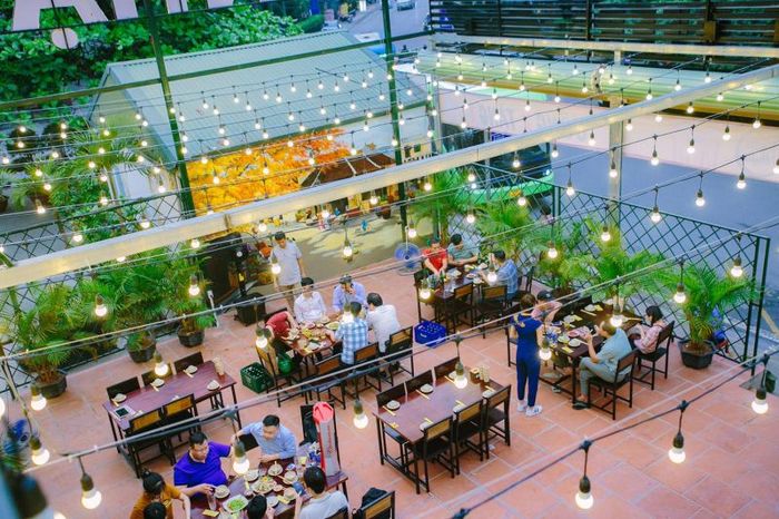 Inside, there are private rooms equipped with air conditioning, fans, and elegant furnishings, suitable for both large and small groups. Whether you're hosting a business meeting, family gathering, or corporate event, you'll find a comfortable and exclusive setting. Come to Vườn Nhậu - 5 Đào Duy Anh for unforgettable moments with loved ones, amazing photo opportunities, and fantastic offers. This venue was designed to provide exceptional service in a larger space, perfect for groups, and a wide variety of options for all customers. If you're looking for a spot to unwind with friends, enjoy a cozy meal with family, or organize an exciting celebration, Vườn Nhậu offers the best service in a unique, peaceful green environment.