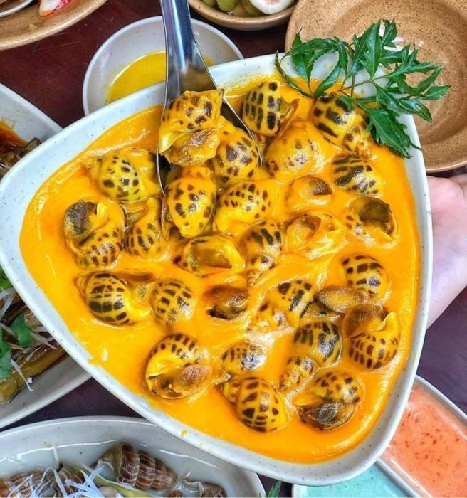 The coconut stir-fried snails at Ốc Bà Đằng - No. 9 Đào Duy Anh are a true delicacy, blending the sweetness of coconut milk with the rich flavor of snails, complemented by spicy chili and warm ginger. The result is a perfectly balanced dish that you'll want to try. The snails are tender and sweet, while the coconut adds a creamy richness. The spicy kick from the chili creates an unforgettable flavor. Alongside the famous coconut stir-fried snails, Ốc Bà Đằng offers a variety of other affordable dishes, ranging from 30,000 to 50,000 VND. The special dipping sauces, like green chili salt and sweet-sour fish sauce, are a hit with customers and elevate the flavors of every dish. Don’t miss the chance to enjoy these irresistible street food delights!