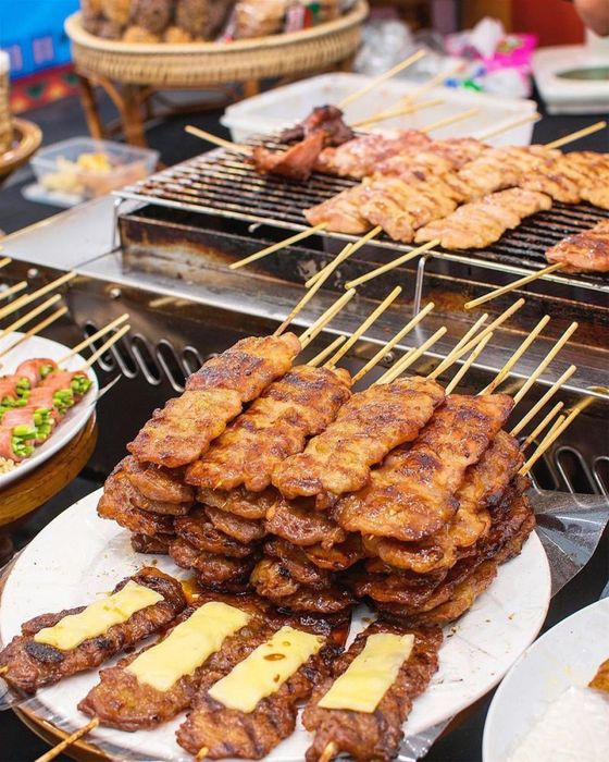 Grilled dishes always attract food lovers, and grilled skewered meat is no stranger to the Vietnamese. The traditional grilled skewered meat is delicious, but Mytour guarantees that Thai-style grilled skewered meat with cheese will melt your heart.