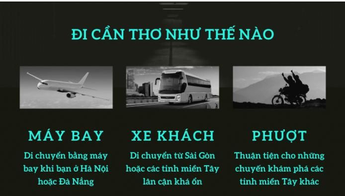To travel to Cần Thơ, you have several options including flying, taking a bus, or riding a motorcycle: