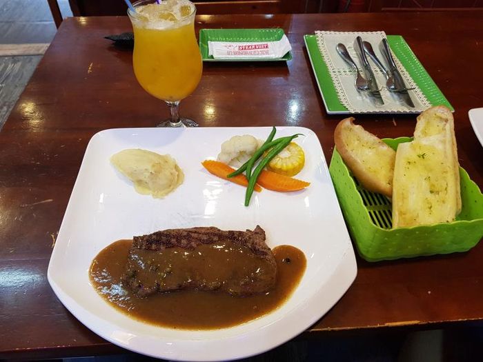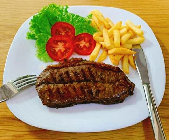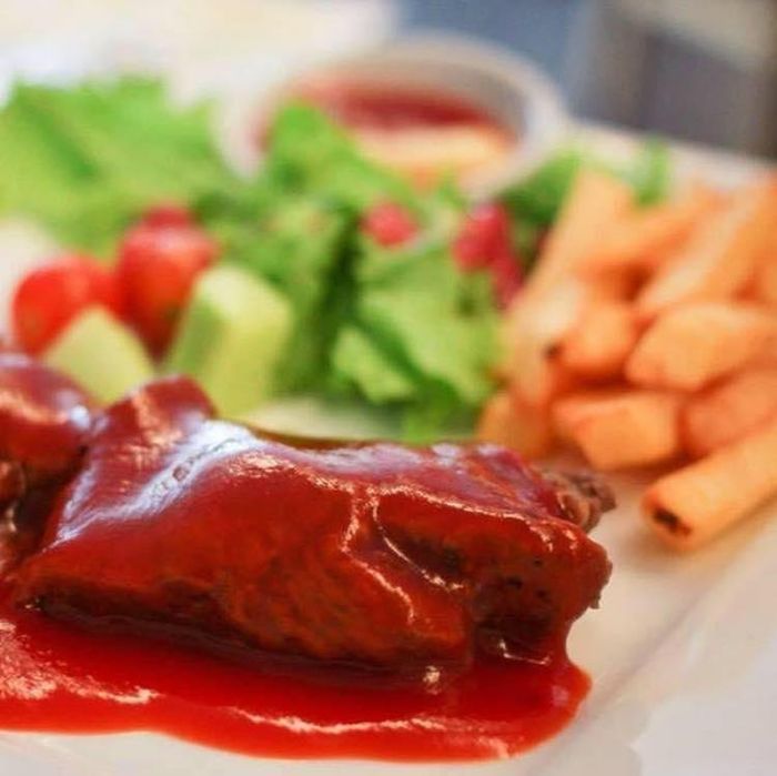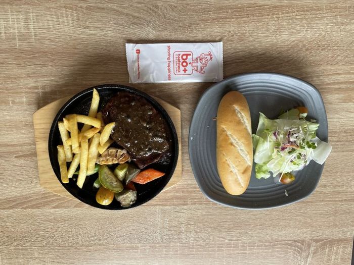 CallAt Beefsteak 100gram, the dishes are presented beautifully on well-prepared plates with plenty of beef, potatoes, salad, dipping sauce, and a soft bread roll. The restaurant offers various sauces, among which the BBQ sauce strikes a perfect balance between sweet and sour. Although the beef is not the highest-grade imported type, it is still prepared to be tender, visually appealing, and suitable for various tastes. Depending on preference, the beef slices can be cooked well-done or medium-rare. Beefsteak 100gram offers very competitive prices, cheaper than the general market, so why hesitate to visit!