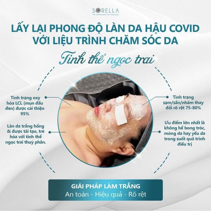 Sorella ensures the use of professional cosmetics from reputable pharmaceutical brands worldwide selected and filtered by the Sorella system's professional department according to criteria of effectiveness, safety, friendliness, and suitability for Vietnamese skin.