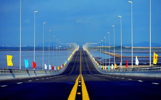 The Tan Vu - Lach Huyen Sea Crossing Bridge in Hai Phong is the longest sea bridge in Vietnam, featuring groundbreaking construction techniques. It connects the Hanoi-Hai Phong expressway (at the Tan Vu interchange) in the Hai An district with the Lach Huyen port entrance (the main international port of Hai Phong) in Cat Hai district. The bridge itself is 5.44 km long, with the connecting roads extending 10.19 km. Designed as a permanent structure with prestressed reinforced concrete, the bridge spans 16 meters in width and accommodates four lanes of traffic. The total investment for the project reached approximately 11,850 billion VND. Officially opened on September 2, 2017, after three years of construction, this bridge was funded by the Ministry of Transport.