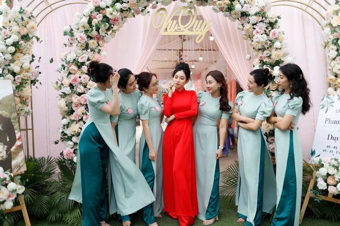 Hand-embroidered and delicately beaded ao dai exude elegance and sophistication, with just a gentle touch revealing the assurance in every detail. Due to the high volume of customers, it's advisable to visit the store in person for fittings and to place a deposit in advance. In addition to bridal and groom ao dai, the store also offers ao dai for the entire bridal party. No need to travel far, as Thảo Nguyên Wedding provides comprehensive rental packages at incredibly competitive prices.