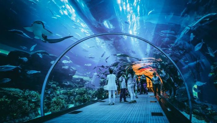 The tower features several exciting entertainment and leisure amenities, including the Sky Bridge Crystal Bridge, a 47th-floor infinity pool, a shopping center, a scenic lookout on the Crystal Bridge, a massive aquarium, a rooftop restaurant and bar, a wax museum, and the high-speed Panorama Elevator.