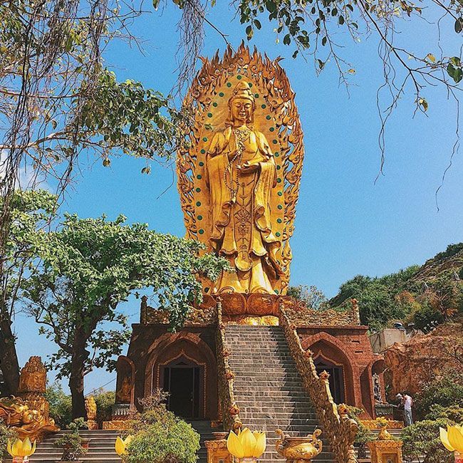 According to local folklore, the golden Quan The Am Kiet Tuong statue facing the mountain symbolizes the golden forest, while the silver Quan The Am Nam Hai statue looking towards the sea represents the silver sea. Therefore, locals believe that these twin Buddha statues will bring prosperity and peace to this land, ensuring a prosperous and peaceful future for the people here.