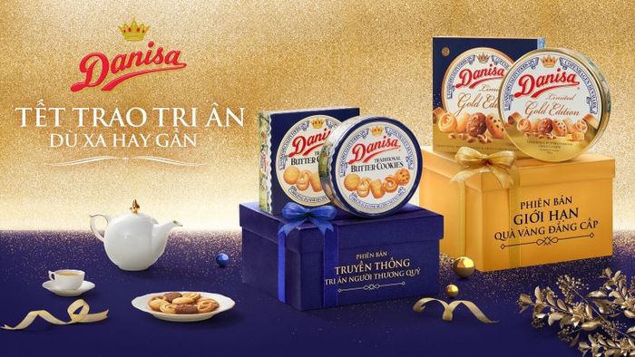 During the Vietnamese New Year, sweets are an essential part of every household. This year, premium gift boxes of butter cookies, especially the royal-style Danisa butter cookies, have become a popular choice for many. Known for their exquisite taste and elegant packaging, Danisa cookies have long been a symbol of appreciation and are commonly gifted during Tet in Vietnam. In addition to the classic blue tin box, Danisa now offers a limited-edition Danisa Gold, featuring luxurious gold packaging and a delightful chocolate cashew flavor, making it the perfect gift for business partners and close loved ones.