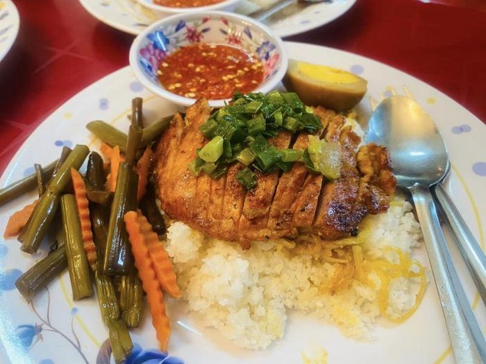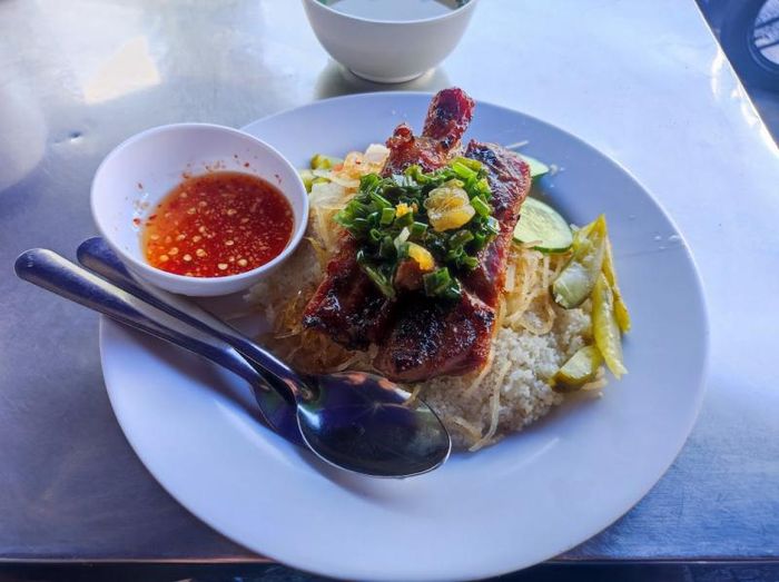 If you’re looking for a delicious plate of broken rice in Rạch Giá, look no further than Quán Cơm Tấm Trường. The signature dish here pairs perfectly cooked rice with flavorful grilled pork ribs, crispy skin, aromatic fried egg rolls, and of course, a tangy, sweet sauce that ties it all together. If you're a true fan of Saigon-style broken rice, you’ll never get bored with the variety at Quán Cơm Tấm Trường, offering everything from the traditional grilled pork with skin and egg roll to marinated chicken leg dishes.