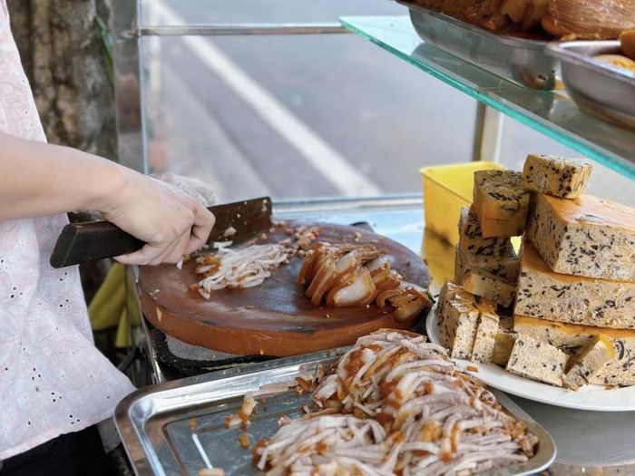 At Quán Cơm Chị Ù, the delicious combination of tender rice, savory grilled meat, rich braised duck egg, crispy pork skin, tangy pickled vegetables, and the perfect sweet-salty fish sauce is what makes the dish so irresistible. Unlike the typical fried sunny-side-up egg, they serve a carefully braised duck or chicken egg with a shiny brown glaze, enhancing the depth of flavor. The special fish sauce is a standout, with its unique recipe that will have you coming back for more after just one dip.