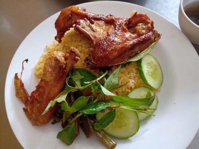 The chicken is carefully marinated and deep-fried to perfection, then coated with a blend of spices for a rich, flavorful taste. The crispy pork fat, made from fresh pig lard, is infused with garlic, onion, and chili, giving it a distinctive taste. When served, the dish is topped with a flavorful sauce that adds depth and a hint of spice. The presentation is eye-catching, making it hard to resist. With great quality and affordable prices, Cơm Gà Xối Mỡ Tuấn Lưu has become a favorite spot for chicken rice lovers in Rạch Giá.