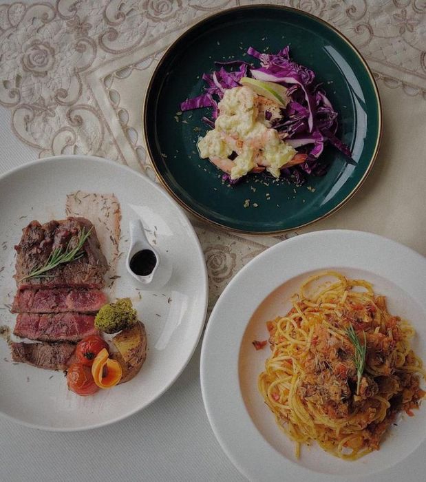 The diverse menu mainly offers European dishes: steaks, pizza, sandwiches, salads, garlic bread, fries, and more. At this restaurant, diners will experience authentic Italian pasta with hand-crafted sauces, unlike many other restaurants that use pre-made sauces. The pasta is paired with distinctive sauces such as minced beef sauce, cream ham sauce, and cheese sauce.