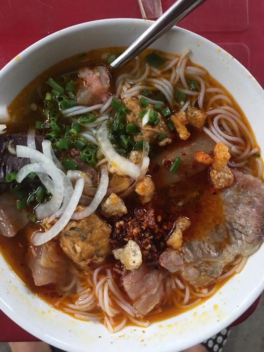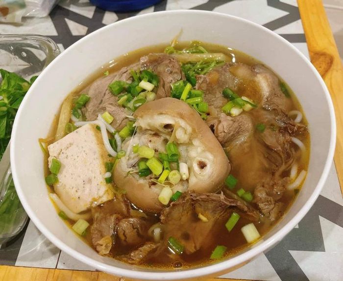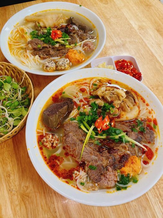 A bowl of Bún Bò Huế Cô Dung is truly irresistible, featuring generous portions of pork knuckle and tender beef shank, both slow-cooked to perfection. The noodles are served with traditional ingredients like shrimp paste, chili, and lime, delivering an authentic Huế flavor that is both delicate and captivating. If you're a fan of spicy dishes, Bún Bò Huế Cô Dung in An Hòa is the perfect spot to satisfy your cravings.