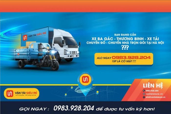 Call NowVantaisieure.vn - Affordable Full-Service Transport specializes in providing affordable three-wheeled vehicle services for transporting goods, moving items, and relocating houses in Hanoi. With a large fleet of vehicles covering all of Hanoi, a vehicle is available just 15 minutes after calling.