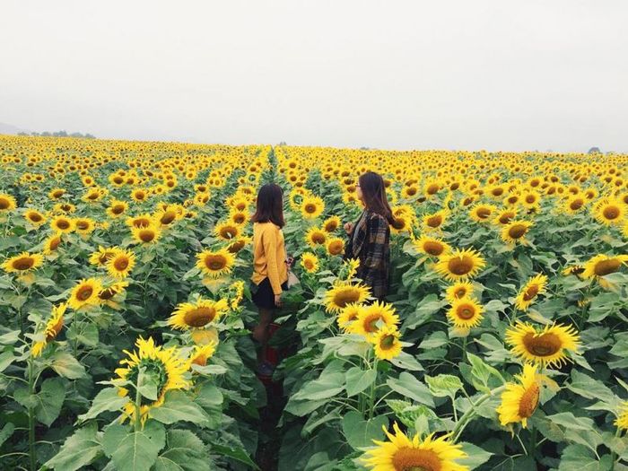 You'll be awestruck by the breathtaking beauty as the entire area is bathed in the golden glow of blooming sunflowers. The tall, majestic flowers reach for the sun, their faces turned toward the light, as if inviting visitors to come closer. During this season, the sunflower fields in Nghe An are filled with tourists, capturing photos and enjoying the scenery. With over 60 hectares of sunflowers, there's plenty of space, unlike smaller sunflower gardens where finding a good photo spot can be a challenge.