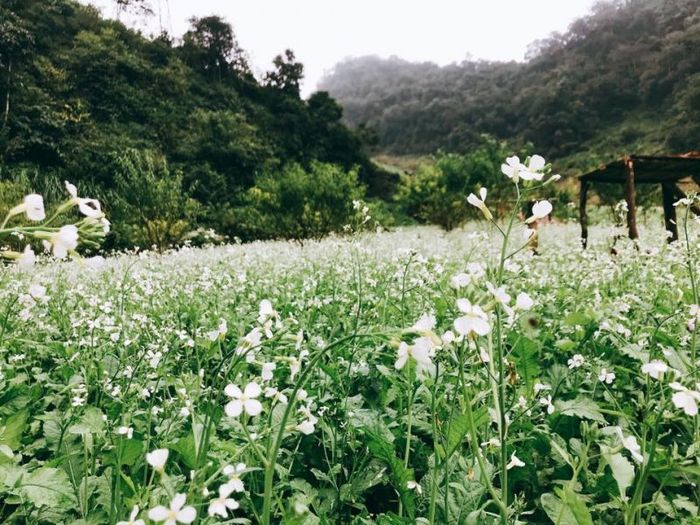 One of the most captivating aspects of Moc Chau's autumn charm is the expansive white fields of mustard flowers, creating a fairy-tale and romantic atmosphere. These white blossoms typically bloom from late October to early November. Unlike the smaller flower fields in Hanoi, in Moc Chau, mustard flowers blanket entire hillsides, extending from one valley to another. The vast spaces are covered with the pristine white of the flowers. Local ethnic groups plant mustard flowers to harvest seeds for sale to oil mills. The perfect time to admire the romantic white mustard fields, bathed in golden sunlight, lasts only two to three weeks.