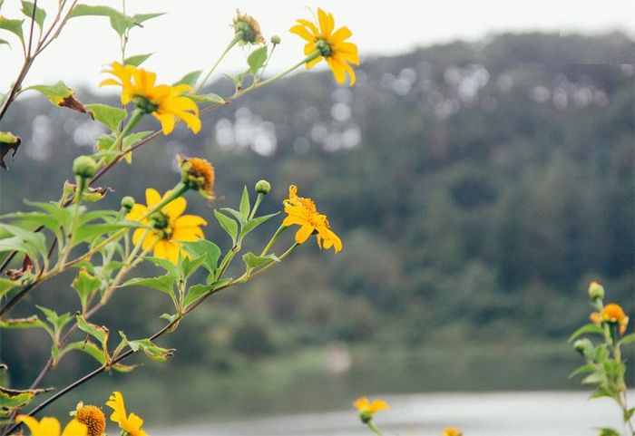 Wild sunflowers are a common sight in the Central Highlands and many northern provinces. However, when one mentions the wild sunflower season, Da Lat is always the first place that comes to mind. It is here that you can experience the sight of fields of bright yellow flowers lining every road. The blooming of these flowers not only marks the end of the rainy season but also attracts travelers to Da Lat to immerse themselves in its dreamy landscape and bask in the wild golden glow of the wild sunflowers. While not as large as sunflowers, their growth in clusters creates a stunning golden carpet, warming the chilly highlands with sunlight and captivating anyone who happens to pass by.