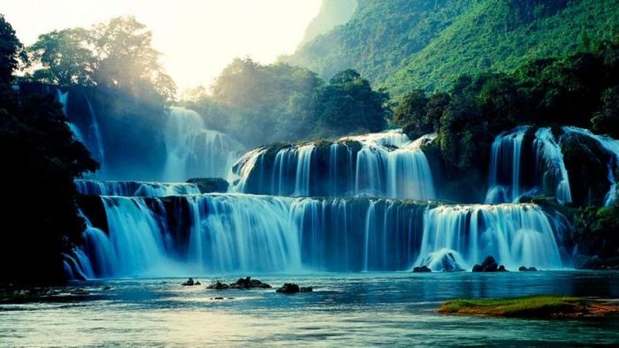The first tier features a gentle slope with many stone steps, making the water flow calmly. On either side, tree roots hang down like hammocks, forming a picturesque, serene landscape. The second tier is more unique, with stacked rocks creating a small pool in the center, resembling a natural mini swimming pool crafted by nature itself. The final tier of Thủy Tiên is the most dramatic. Initially, the water falls fiercely, crashing against jagged rocks below and creating a cloud of white foam, before suddenly calming and transforming into crystal-clear streams flowing serenely downstream. The abrupt transition leaves visitors in awe and amazement.