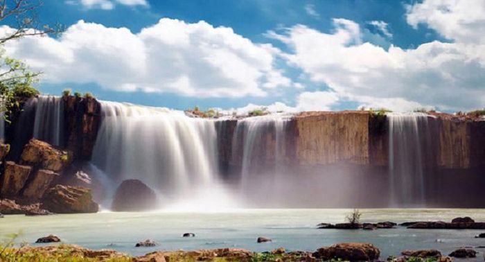 The waterfall stretches over 250 meters in length, standing 30 meters high, and spans about 150 meters, connecting the borders of Dak Lak and Dak Nong provinces. However, the most thrilling experience is not just admiring the waterfall but exploring the nearly 3,000m² cave hidden behind it. The sight and sound of water plunging down from above evoke an exhilarating rush for many visitors.