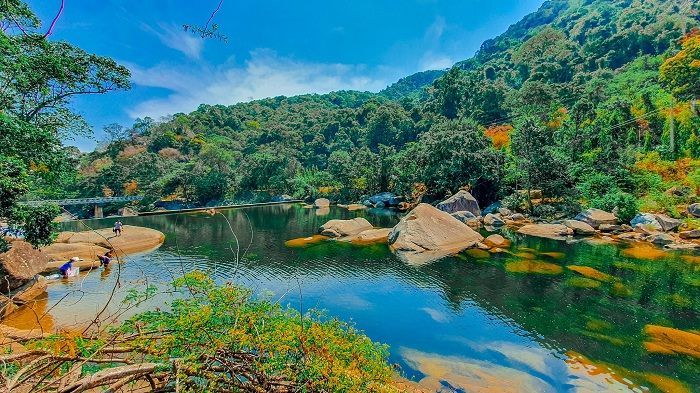 During the rainy season, the waterfall expands to more than 100 meters in width, and the water plunges from great heights, forming large swirling waves. The lower reaches of the waterfall create expansive natural pools, so perfect that they almost appear to be artificially crafted by humans. Among them, the most beautiful is the “Fairy Bath” pool. Its flawless, wild beauty has given rise to a local legend. According to the tale, the fairies of the heavens would often visit the site and bathe in its cool waters, which led to the pool being named “Fairy Bath.” Even Emperor Bao Dai, captivated by the legend, was drawn to this magical place and often bathed in the pool during his visits.