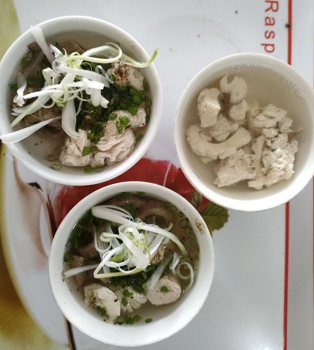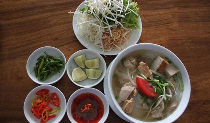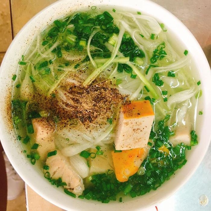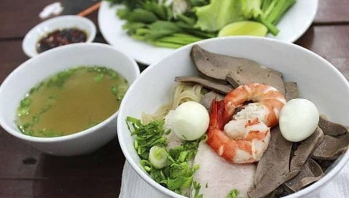 There are two main ways to enjoy Hủ Tiếu: in a soup or dry. The soup version, served steaming hot, with minced meat, thinly sliced pork, heart, and liver, is the most popular. The owner has made slight modifications to the original recipe to please the tastes of the locals and visitors alike: shrimp is added to the toppings, and the dish includes more herbs like celery and Vietnamese mustard greens. The crispy pork skin fried in garlic, along with fresh herbs and a drizzle of soy sauce and lime juice, makes the dish even more delightful. If you're in Phan Chu Trinh and craving authentic Hủ Tiếu Mỹ Tho, make sure to stop by Hủ Tiếu Mỹ Tho Hải Trâm.