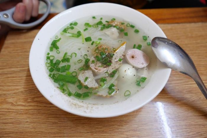 The broth, which is the heart of any noodle dish, is made by simmering fresh fish and bone stock, giving it a rich and sweet flavor. The bánh canh noodles are small and soft, making them easy to enjoy. The fish cakes here are made from fresh seafood, which gives them a delightful sweetness and chewy texture. Customers can even add extra fish if they wish. A steaming hot bowl, topped with fresh green onions and a touch of chili, all meld together to create a bánh canh that will leave a lasting impression. This is why Bánh Canh Bà Thừa always has a steady stream of customers from opening hour onward.