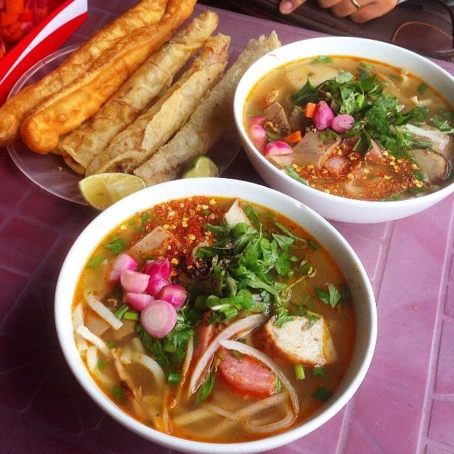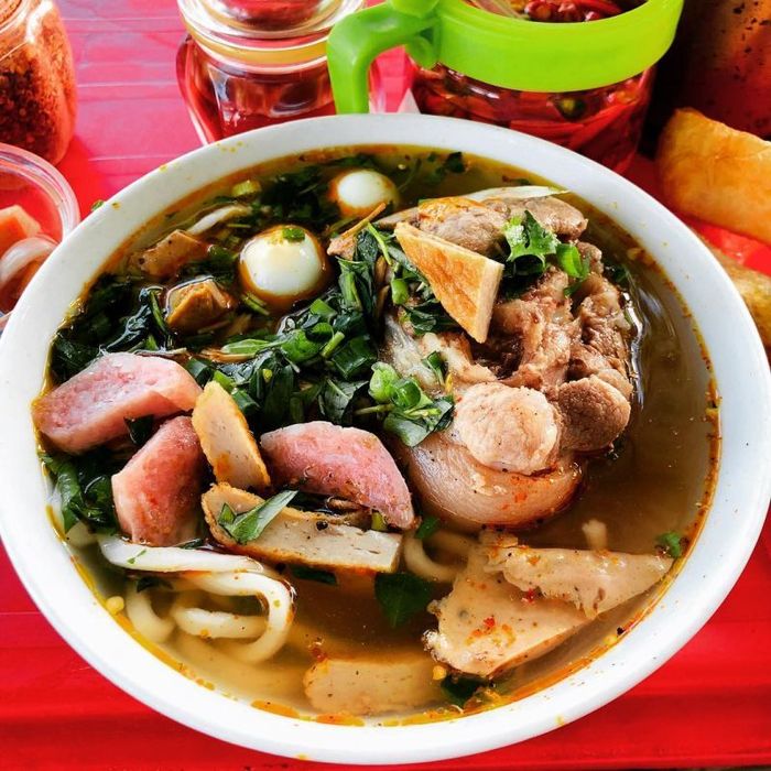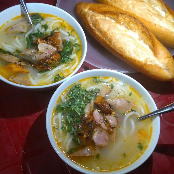 Located on Pham Nhu Xuong Street, Chao Cho Vy is easy to find and has been a beloved spot for a long time. Interestingly, although it’s named Chao Cho, the main dish served here is actually Banh Canh (Vietnamese noodle soup). Made from either wheat flour or tapioca starch, it’s served with fish, fish cakes, and boiled quail eggs. Perhaps the name 'Chao Cho' comes from the consistency of the dish, which is thick like porridge due to the noodles cooked in broth. Once you try it, you’ll be hooked because the dish here is known for being both delicious and fragrant.