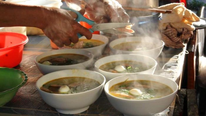 When talking about Chao Cho, one cannot miss the famous Central Specialties - Ho Ba On located at 1 Ho Ba On Street. This place has become quite a well-known and easily memorable name. It has been around for many years and originally catered mostly to working-class locals. Over time, word spread about its deliciousness, and now both locals and tourists alike stop by to try the affordable and tasty dish. The spot is particularly popular with students, many of whom travel several kilometers just to enjoy this unique Banh Canh dish.