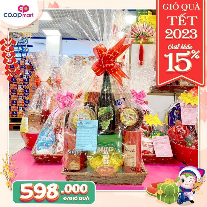 In addition to offering cultural value, Co.opmart is also committed to constantly enhancing the quality of its products and services. Every year, especially during the Tet season, Saigon Co.op supermarkets stock a wide range of Tet-related products, with Tet gift baskets always in high demand. Co.opmart offers more than 50 types of Tet gift baskets, priced between 300,000 and 2,000,000 VND, depending on the products included. The supermarket also provides a gift wrapping service tailored to customers' requests.