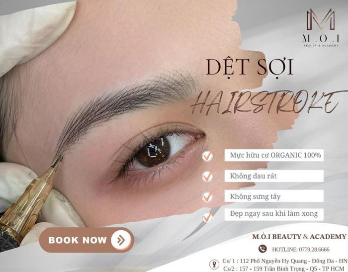 M.Ò.I Beauty & Academy is a highly trusted beauty clinic in Hanoi, known for its exceptional eyebrow and lip tattooing services, chosen by celebrities and thousands of satisfied customers. The secret lies in the advanced European technique for lip tattoos combined with the latest collagen-infused treatments offered at M.Ò.I.