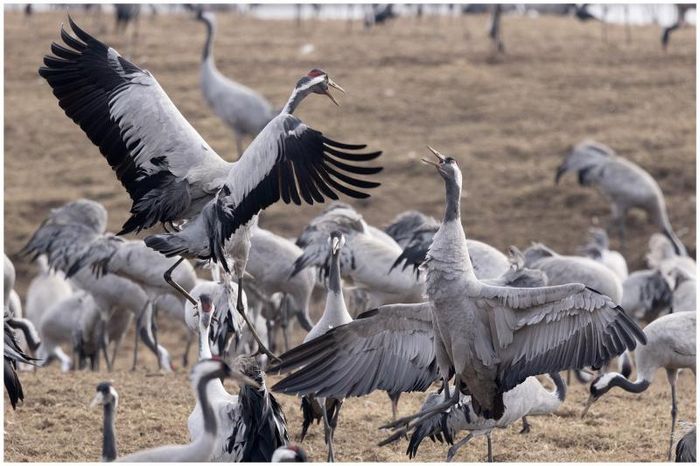 Today, Hornborga Lake is a renowned sanctuary for birds, offering a vital resting and breeding ground for waterfowl species such as loons, ducks, cranes, waders, and black-headed gulls. Every spring, the lake becomes a prime destination for tourists hoping to witness the mesmerizing courtship dances of thousands of cranes. Situated in the historic Västergötland region of southern Sweden, the area is also known for its ancient landmarks and stone walls.
