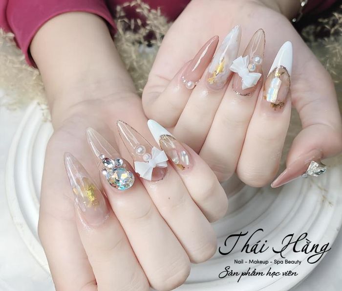 At Tran Bich Thuy, you can choose a simple nude-colored nail set, a sparkling stone-covered set, or a gentle flower-adorned set. Visiting Tran Bich Thuy Nail may take up your entire afternoon, as the salon is meticulous, but in return, you will get an extremely satisfying and lovely nail set.