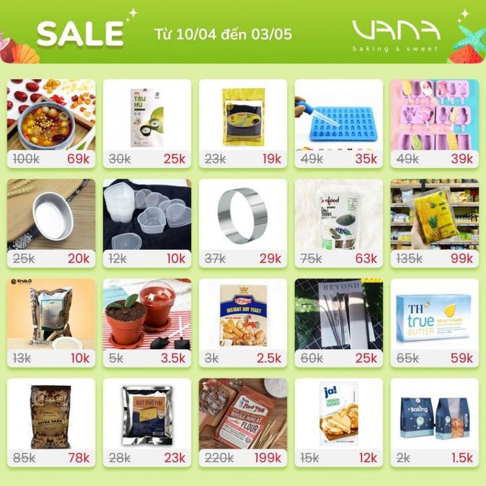 Call NowExplore Vana Shop for all your baking needs, from utensils such as cupcake molds, cake molds, cookie cutters to egg beaters with various shapes, and especially many items at affordable prices to fit every budget from low to high. The store also sells basic baking ingredients such as flour, butter, cream, and decorative additives. There are even packaging and boxes for those interested in the baking industry.
