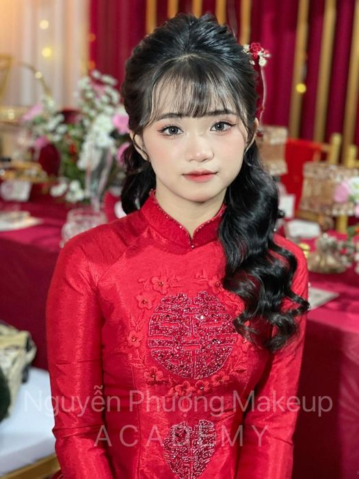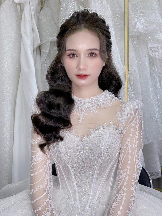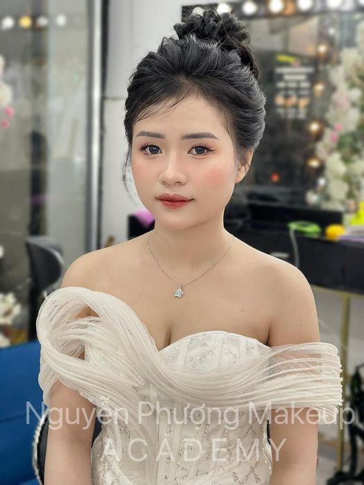 Here, brides can choose a style that suits their personality, whether it’s sweet, elegant, youthful, graceful, modern, glamorous, or a combination of these looks. The makeup artists at Nguyễn Phượng Wedding excel at blending these styles to create a unique and exquisite result, thanks to their skilled hands and keen eye for detail. With these makeup styles, you don't have to overthink your hairstyle; simply a gentle, flowing style or a neat, shiny updo is enough to bring out a royal aura on your big day, just like a fairy tale princess.
