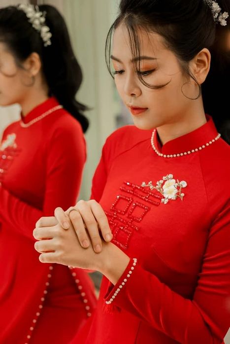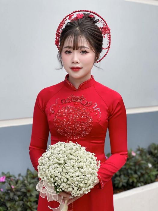 When doing bridal makeup, Thương Hoàng doesn't focus on trendy makeup tones, Chinese-style eye hacks, or popular blush techniques. Instead, the focus is on perfecting skin imperfections, matching colors to the bride’s skin tone, outfit, and emphasizing her face’s unique features to reflect her personality. This is how Thương Hoàng customizes makeup to suit each bride's individual style.