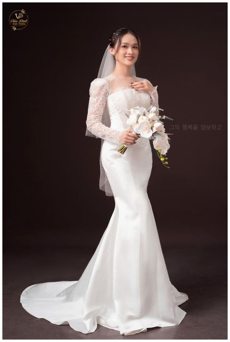 The trend for simple, natural, delicate makeup with a porcelain-like complexion, translucent foundation, and matching eye and lip colors, combined with tousled hair, always gives the bride a youthful, fresh, and free-spirited appearance. Keeping up with this trend, the guiding principle at Áo cưới Vân Nguyễn is to maintain a "soft yet modern" look, allowing every bride to shine brilliantly on her wedding day.