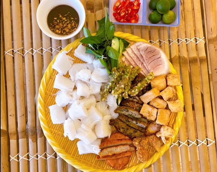 The restaurant serves a variety of dishes, including noodles, fried tofu, chả cốm, and boiled pork. Each dish offers a distinct flavor, but the highlight is the flavorful shrimp paste, which is perfectly blended to bring out its rich taste. The dishes are served piping hot, full of flavor and complexity. If you enjoy adding fresh herbs, the restaurant offers a selection of fresh vegetables. What sets this place apart is its perfectly prepared noodles, which are aromatic, firm, and non-sticky. The crispy fried tofu, tender boiled pork, and especially the meticulously prepared shrimp paste make this spot a must-visit.